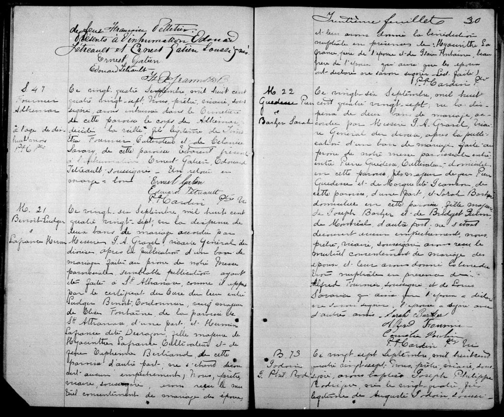 Sainte-Marie-de-Monnoir, 1801-1921, Archives nationales à Montréal, Fonds Cour supérieure. District judiciaire de Saint-Hyacinthe. État civil, (06M,CE602,S21).