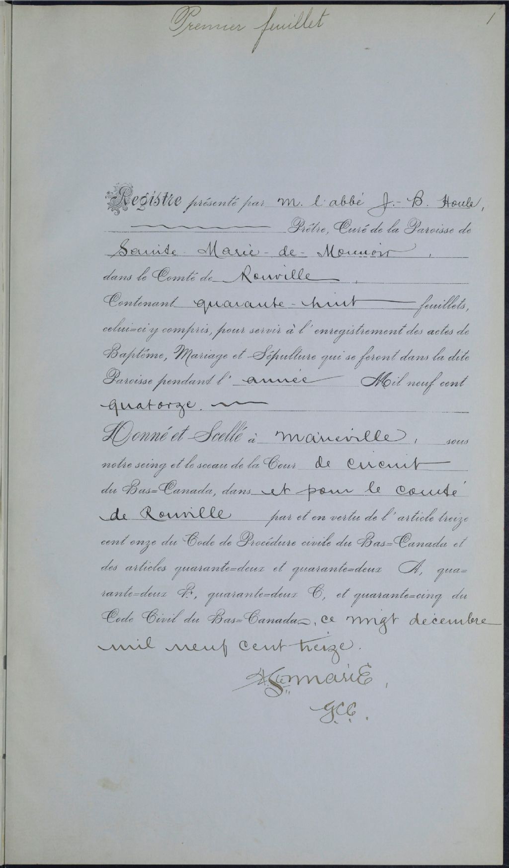 Sainte-Marie-de-Monnoir, 1801-1921, Archives nationales à Montréal, Fonds Cour supérieure. District judiciaire de Saint-Hyacinthe. État civil, (06M,CE602,S21).