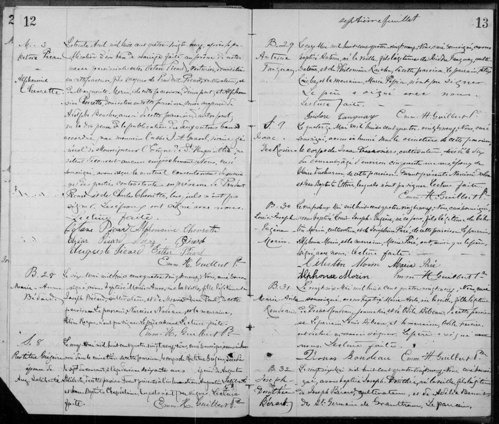 Saint-Théodore-d'Acton, 1862-1921, Archives nationales à Montréal, Fonds Cour supérieure. District judiciaire de Saint-Hyacinthe. État civil, (06M,CE602,S27).