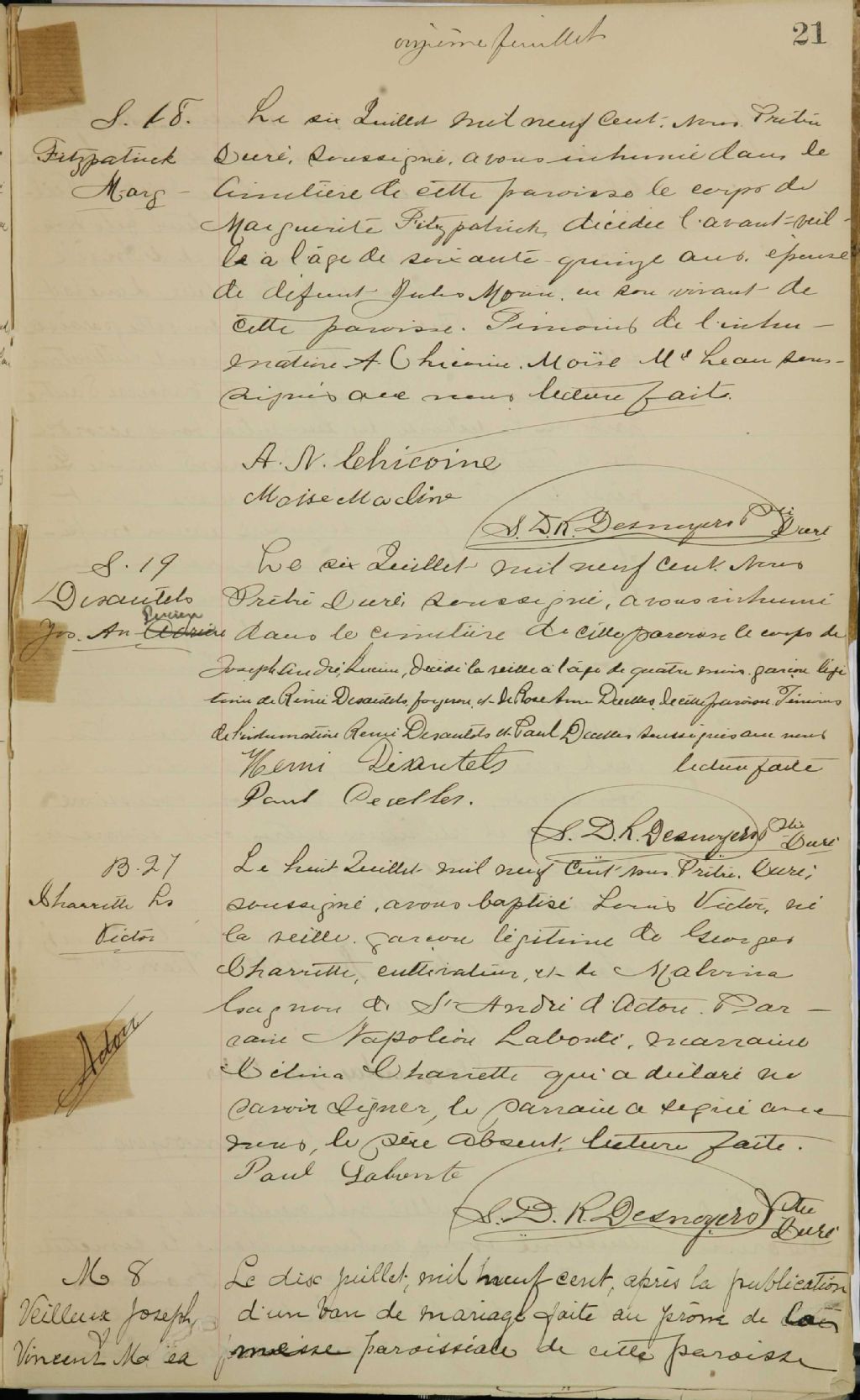 Saint-Théodore-d'Acton, 1862-1921, Archives nationales à Montréal, Fonds Cour supérieure. District judiciaire de Saint-Hyacinthe. État civil, (06M,CE602,S27).