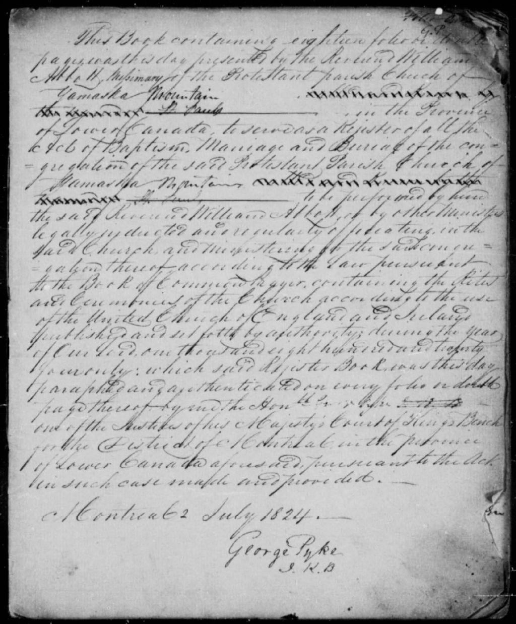 St. Paul d'Abbotsford Anglican Church, 1824-1921, Archives nationales à Montréal, Fonds Cour supérieure. District judiciaire de Saint-Hyacinthe. État civil, (06M,CE602,S28).