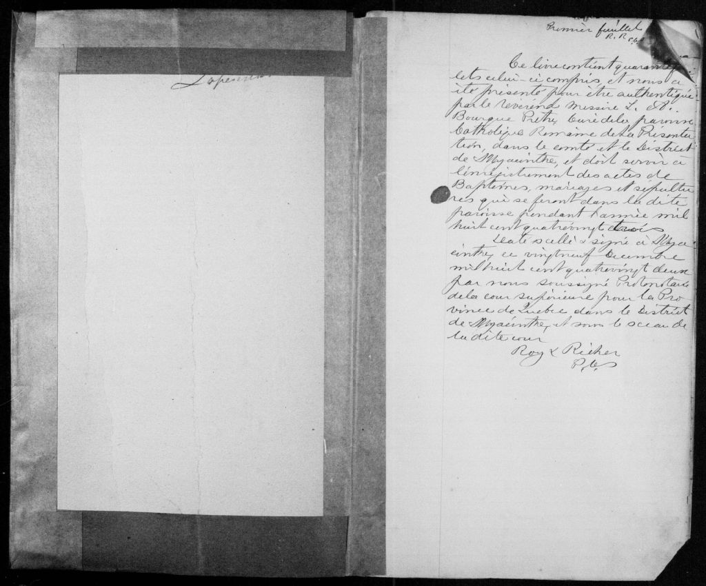 La-Présentation-de-la-Sainte-Vierge, 1806-1921, Archives nationales à Montréal, Fonds Cour supérieure. District judiciaire de Saint-Hyacinthe. État civil, (06M,CE602,S3).