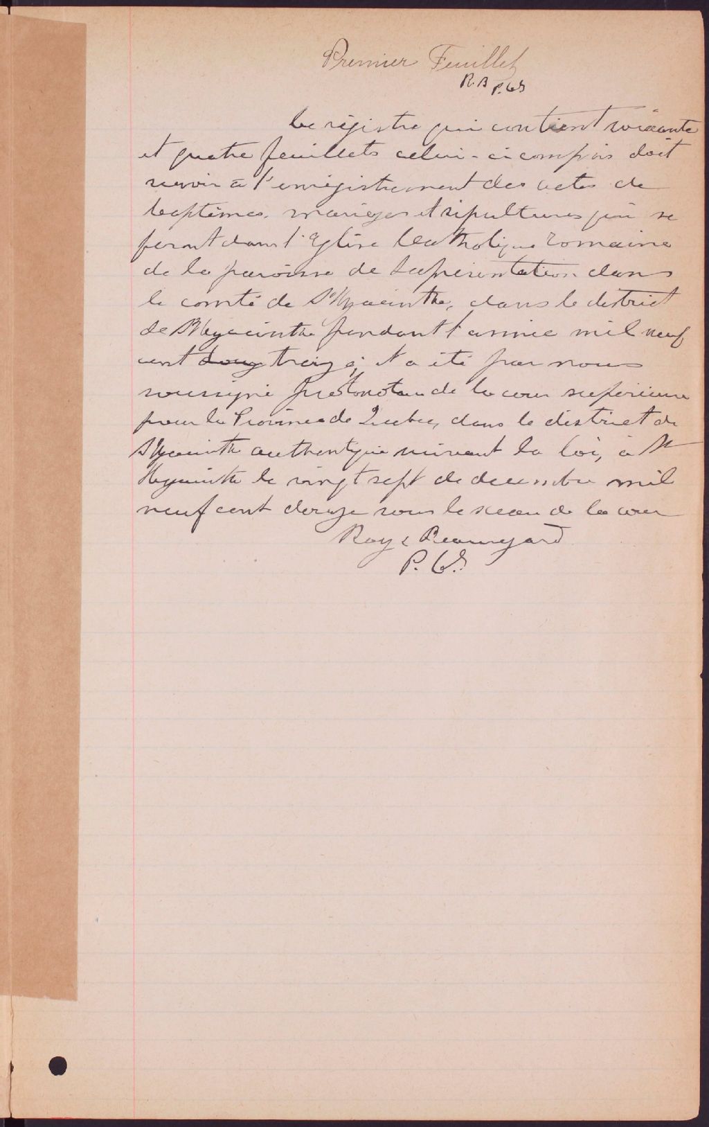 La-Présentation-de-la-Sainte-Vierge, 1806-1921, Archives nationales à Montréal, Fonds Cour supérieure. District judiciaire de Saint-Hyacinthe. État civil, (06M,CE602,S3).