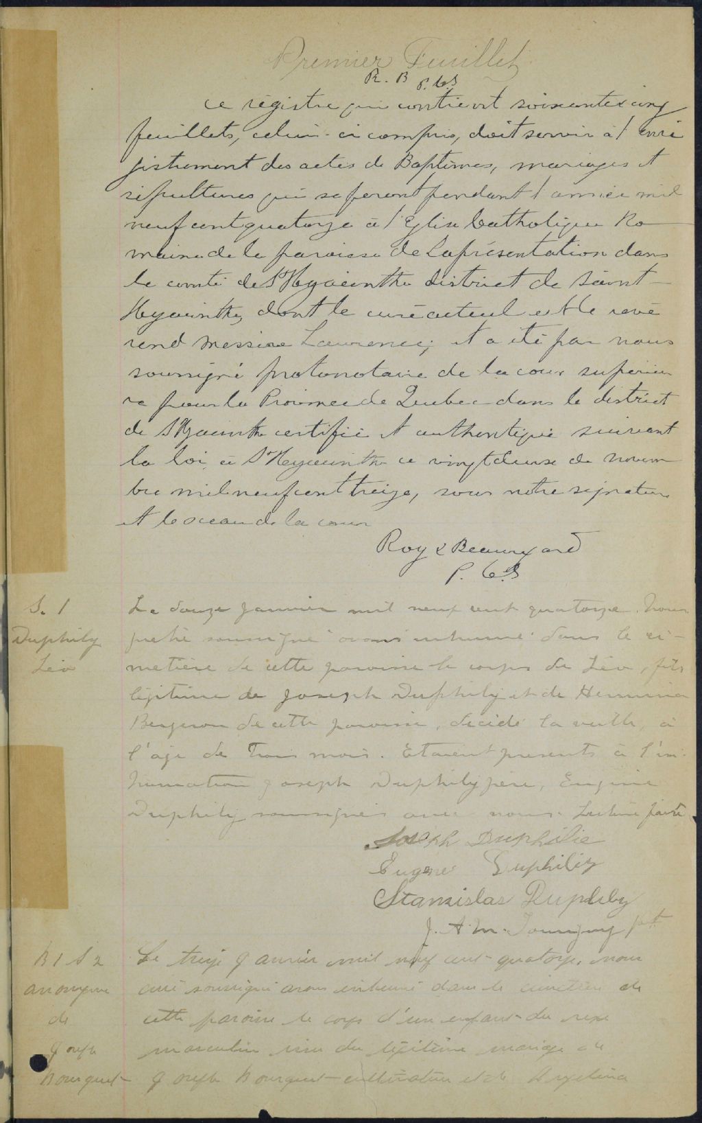 La-Présentation-de-la-Sainte-Vierge, 1806-1921, Archives nationales à Montréal, Fonds Cour supérieure. District judiciaire de Saint-Hyacinthe. État civil, (06M,CE602,S3).