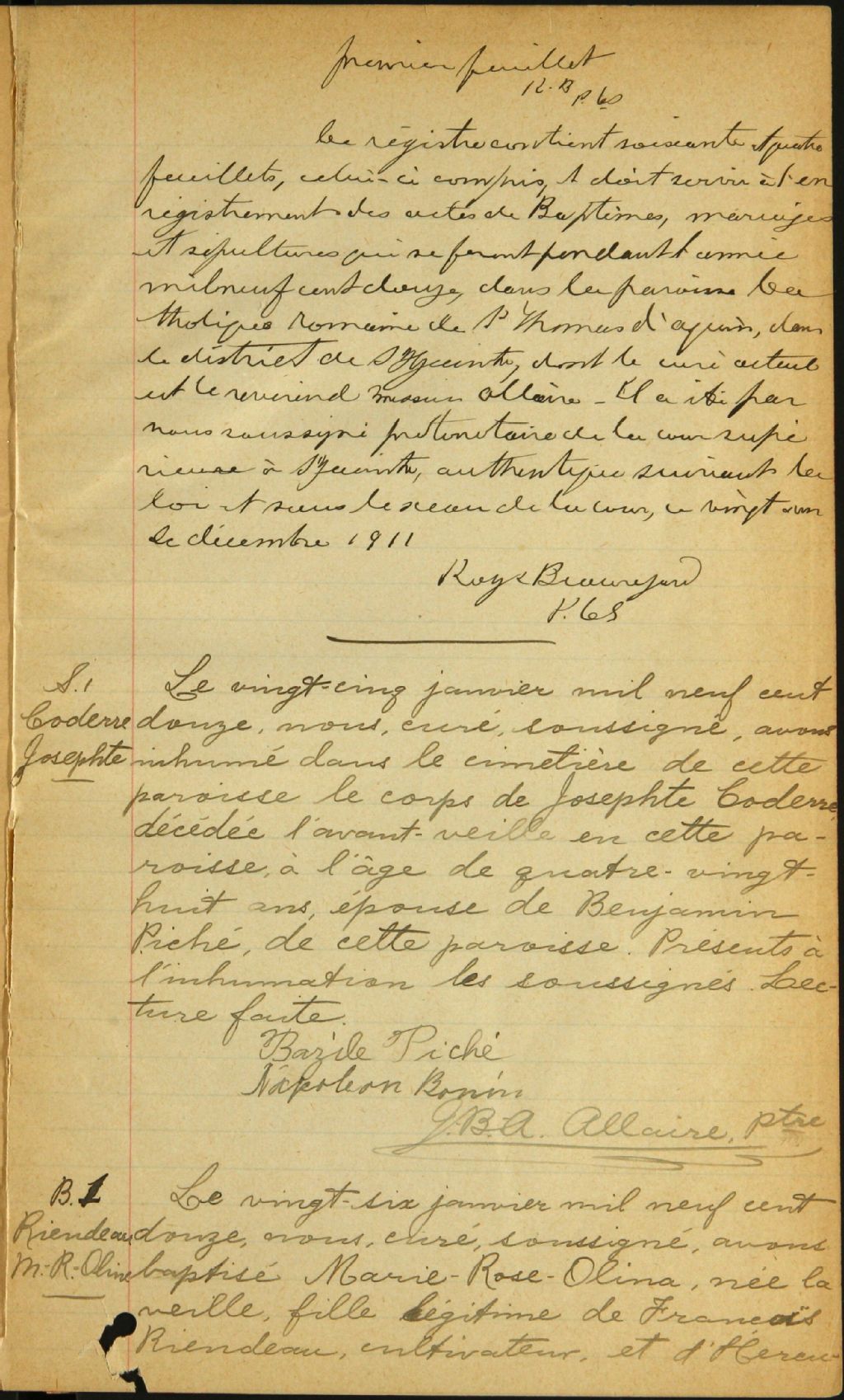 Saint-Thomas-d'Aquin, 1891-1921, Archives nationales à Montréal, Fonds Cour supérieure. District judiciaire de Saint-Hyacinthe. État civil, (06M,CE602,S39).