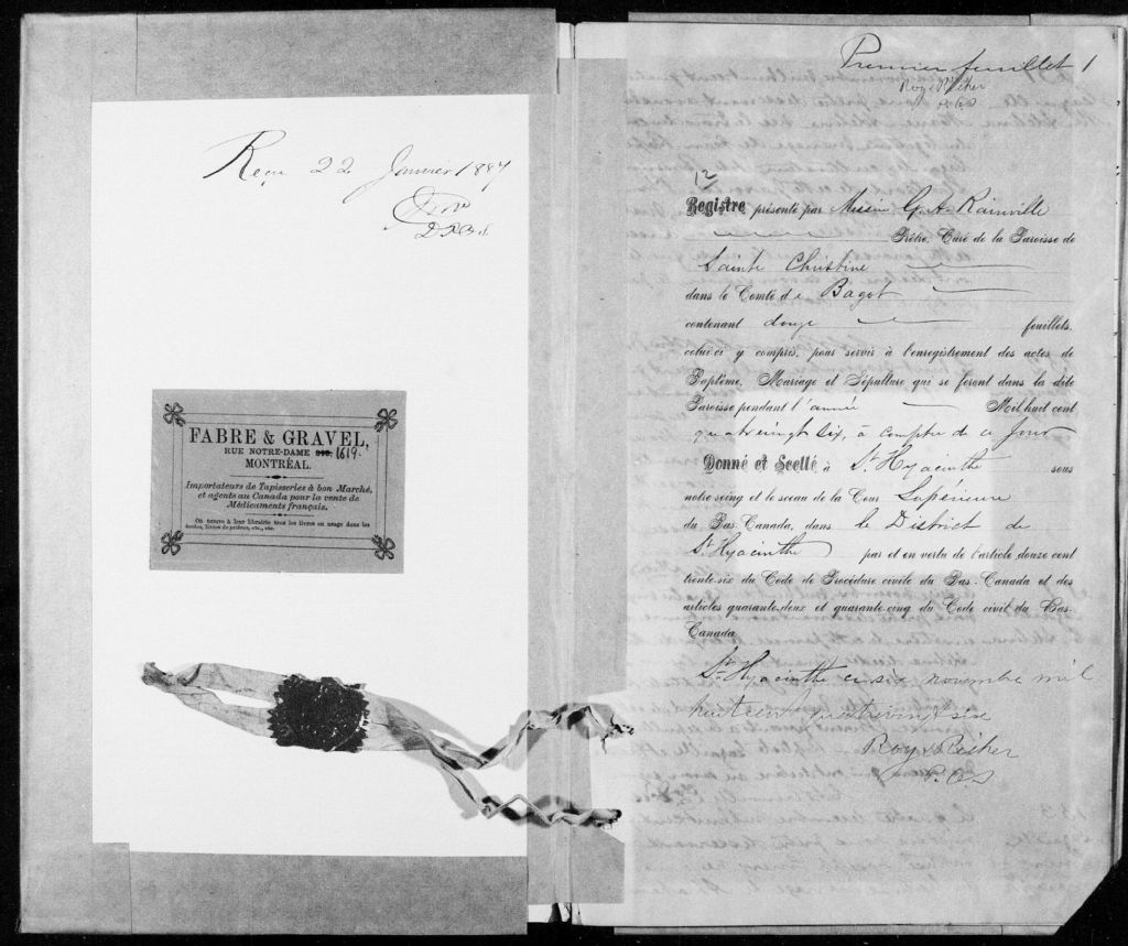 Sainte-Christine, 1886-1921, Archives nationales à Montréal, Fonds Cour supérieure. District judiciaire de Saint-Hyacinthe. État civil, (06M,CE602,S40).