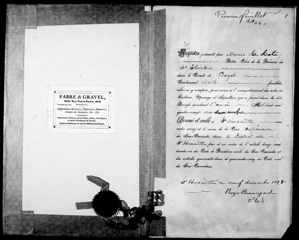 Sainte-Christine, 1886-1921, Archives nationales à Montréal, Fonds Cour supérieure. District judiciaire de Saint-Hyacinthe. État civil, (06M,CE602,S40).
