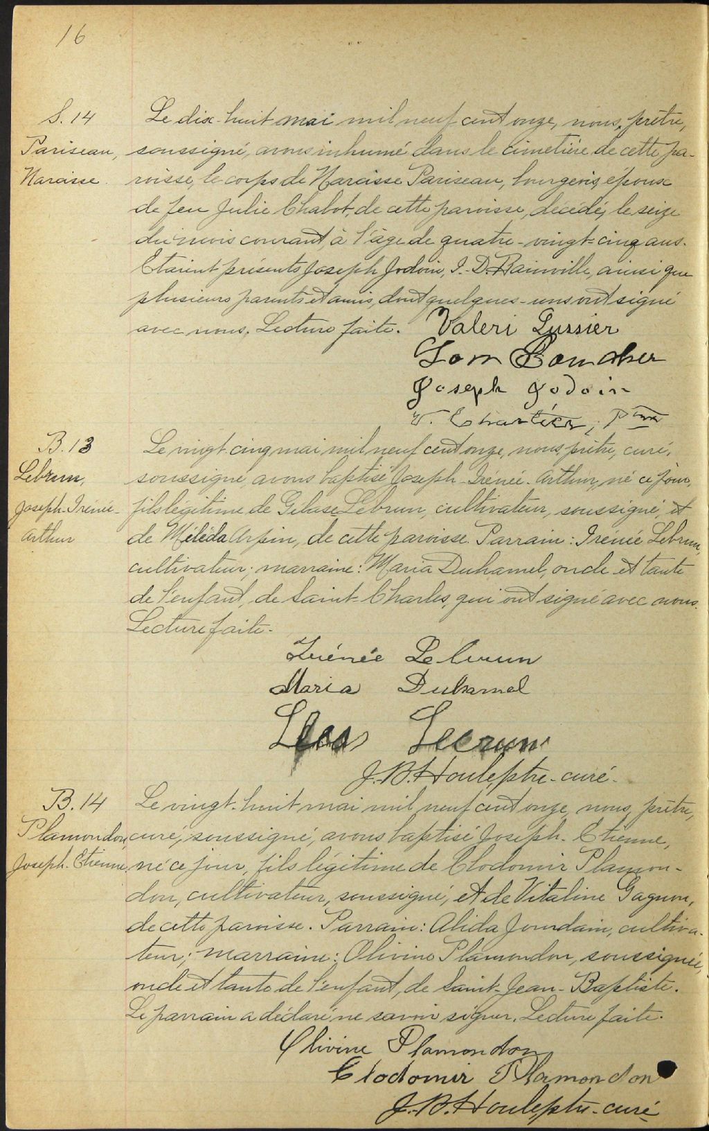 Sainte-Marie-Madeleine, 1876-1921, Archives nationales à Montréal, Fonds Cour supérieure. District judiciaire de Saint-Hyacinthe. État civil, (06M,CE602,S41).