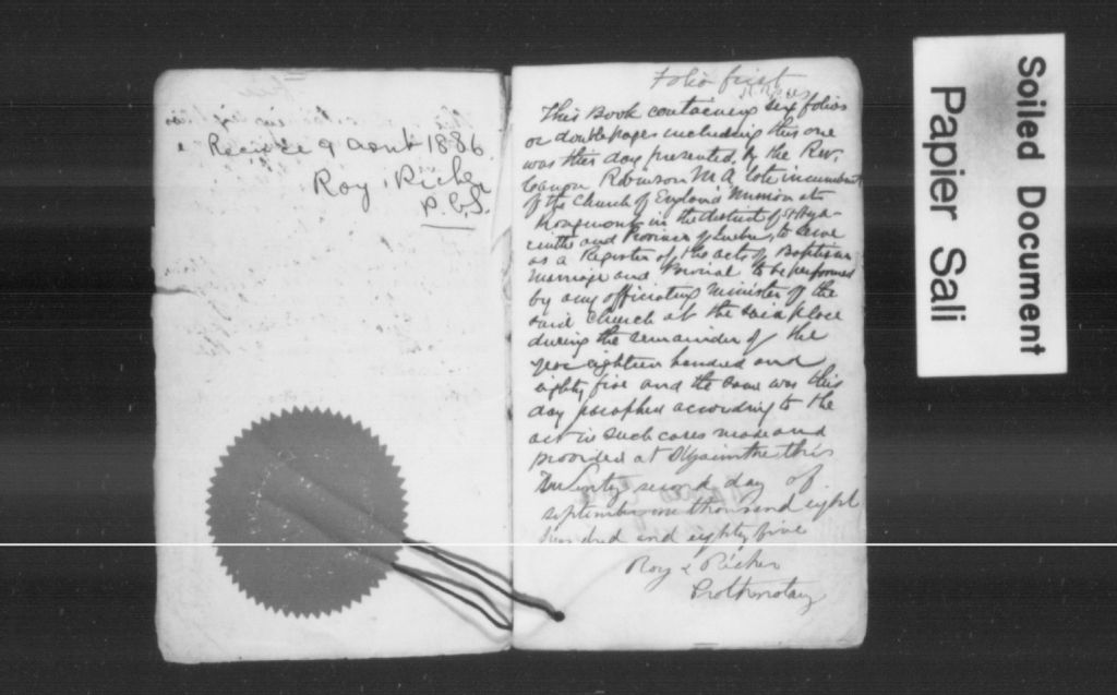 St. Thomas Anglican Church, 1885-1921, Archives nationales à Montréal, Fonds Cour supérieure. District judiciaire de Saint-Hyacinthe. État civil, (06M,CE602,S42).