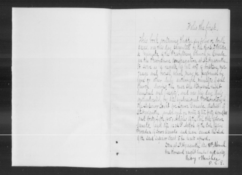 Église presbytérienne de Saint-Hyacinthe, 1880-1921, Archives nationales à Montréal, Fonds Cour supérieure. District judiciaire de Saint-Hyacinthe. État civil, (06M,CE602,S43).