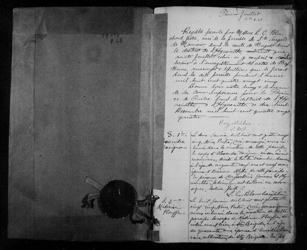 Sainte-Angèle, 1865-1921, Archives nationales à Montréal, Fonds Cour supérieure. District judiciaire de Saint-Hyacinthe. État civil, (06M,CE602,S7).