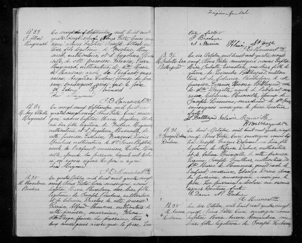 Sainte-Angèle, 1865-1921, Archives nationales à Montréal, Fonds Cour supérieure. District judiciaire de Saint-Hyacinthe. État civil, (06M,CE602,S7).