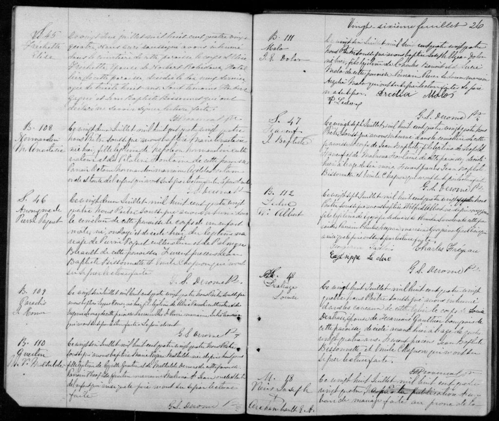 Saint-Césaire, 1822-1921, Archives nationales à Montréal, Fonds Cour supérieure. District judiciaire de Saint-Hyacinthe. État civil, (06M,CE602,S9).