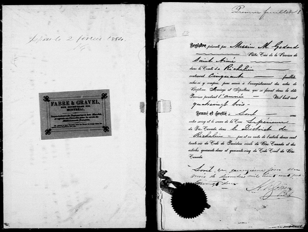 Saint-Aimé, 1836-1921, Archives nationales à Montréal, Fonds Cour supérieure. District judiciaire de Richelieu. État civil, (06M,CE603,S1).