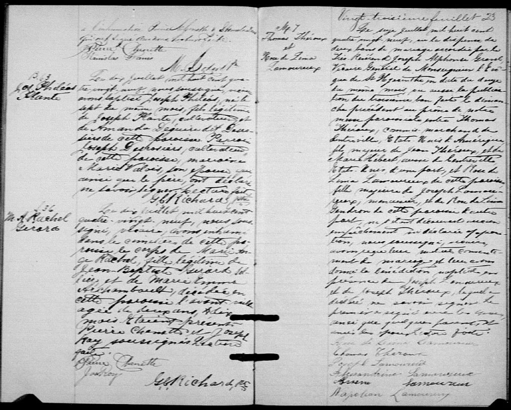 Saint-Aimé, 1836-1921, Archives nationales à Montréal, Fonds Cour supérieure. District judiciaire de Richelieu. État civil, (06M,CE603,S1).