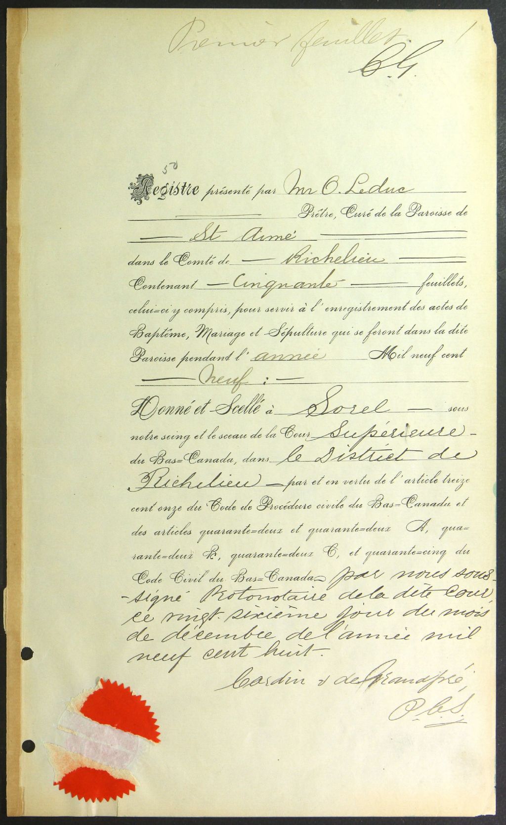 Saint-Aimé, 1836-1921, Archives nationales à Montréal, Fonds Cour supérieure. District judiciaire de Richelieu. État civil, (06M,CE603,S1).