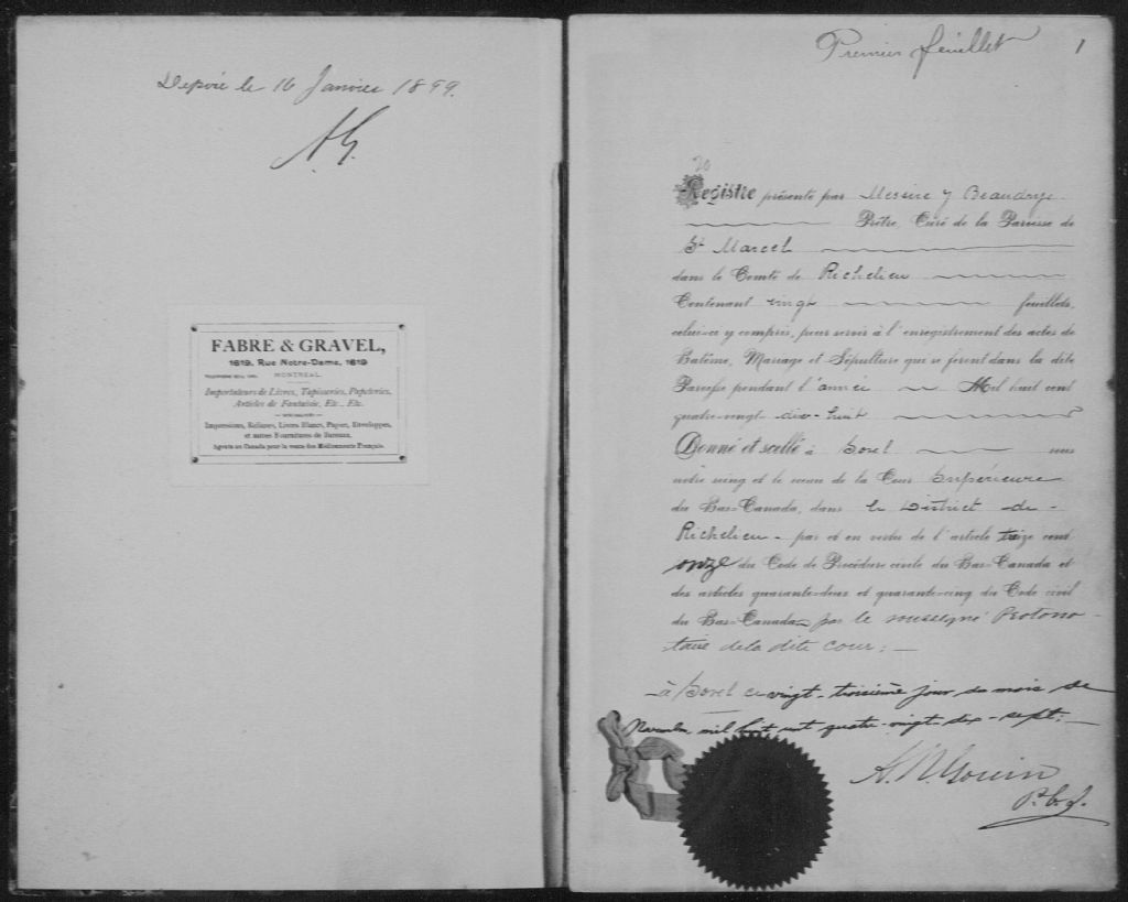 Saint-Marcel, 1855-1921, Archives nationales à Montréal, Fonds Cour supérieure. District judiciaire de Richelieu. État civil, (06M,CE603,S13).