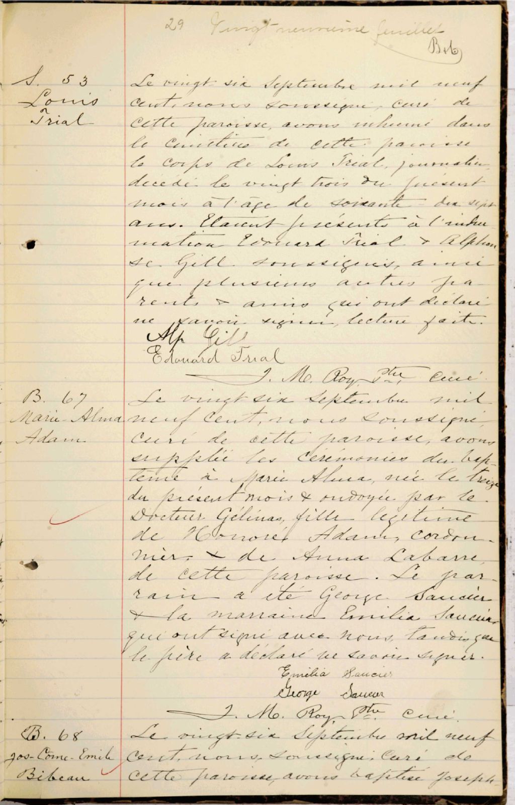 Saint-Thomas-de-Pierreville, 1853-1921, Archives nationales à Montréal, Fonds Cour supérieure. District judiciaire de Richelieu. État civil, (06M,CE603,S10).