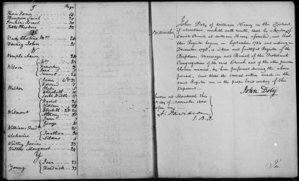 Christ Church Anglican, 1784-1921, Archives nationales à Montréal, Fonds Cour supérieure. District judiciaire de Richelieu. État civil, (06M,CE603,S16).