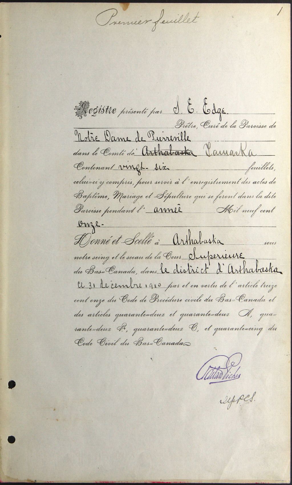 Notre-Dame-de-Pierreville, 1893-1921, Archives nationales à Montréal, Fonds Cour supérieure. District judiciaire de Richelieu. État civil, (06M,CE603,S20).