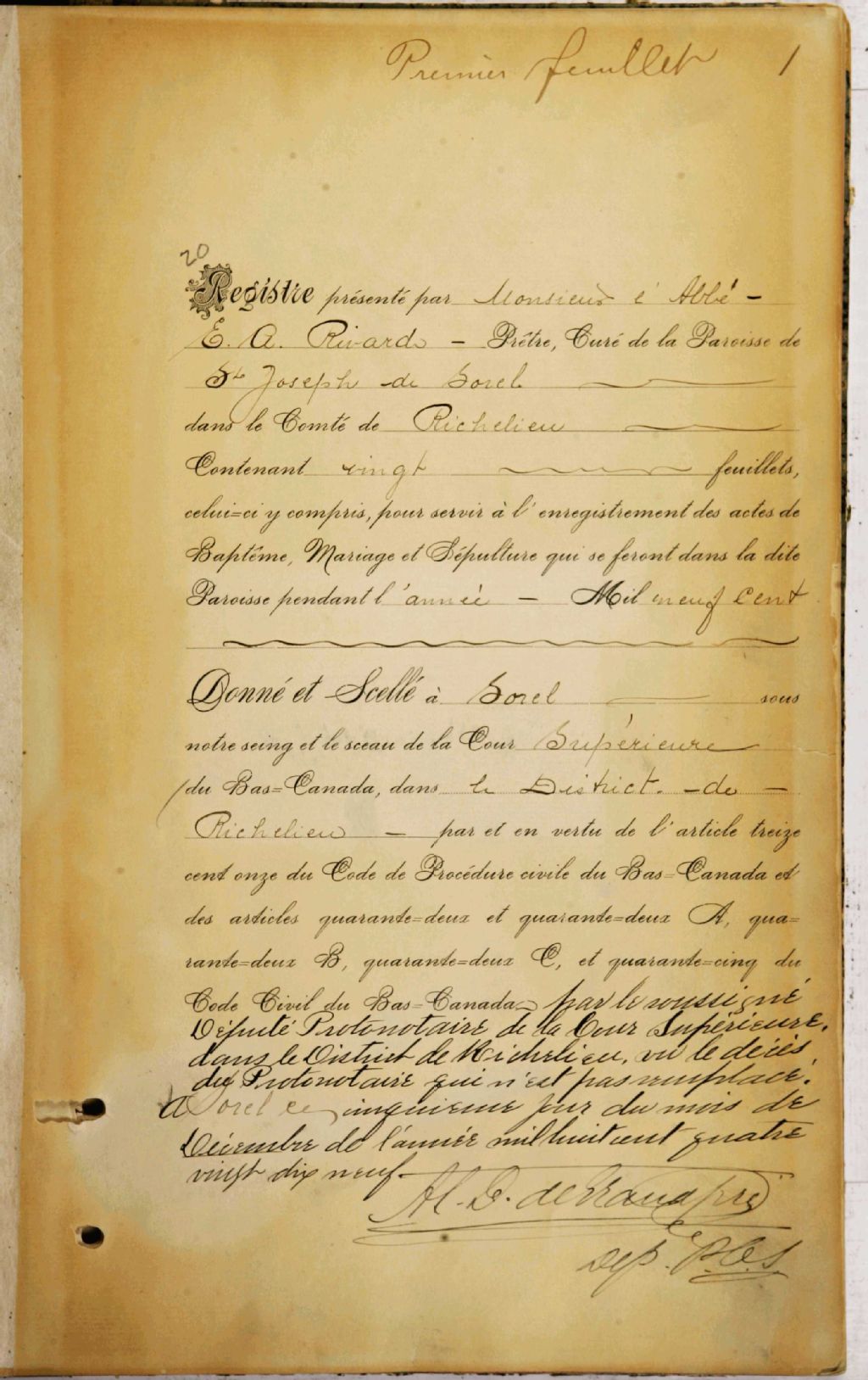 Saint-Joseph, 1881-1921, Archives nationales à Montréal, Fonds Cour supérieure. District judiciaire de Richelieu. État civil, (06M,CE603,S22).