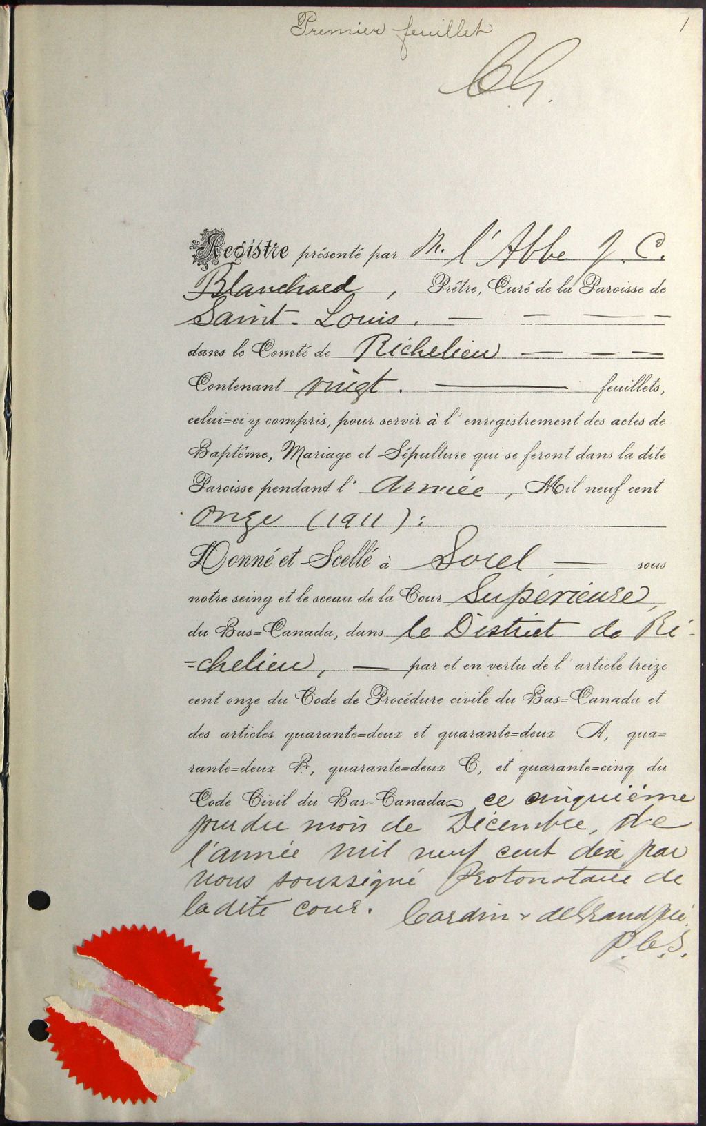 Saint-Louis, 1876-1921, Archives nationales à Montréal, Fonds Cour supérieure. District judiciaire de Richelieu. État civil, (06M,CE603,S23).
