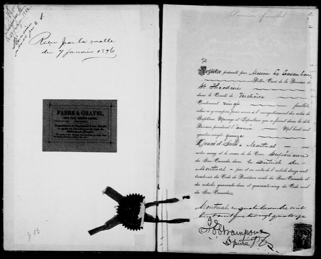 Sainte-Théodosie, 1880-1921, Archives nationales à Montréal, Fonds Cour supérieure. District judiciaire de Richelieu. État civil, (06M,CE603,S24).