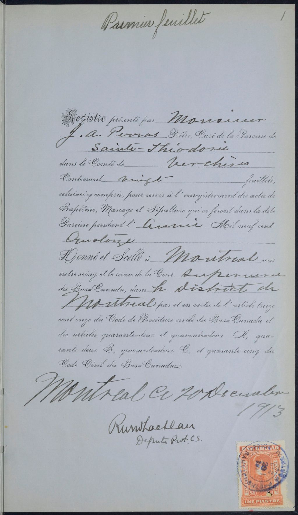 Sainte-Théodosie, 1880-1921, Archives nationales à Montréal, Fonds Cour supérieure. District judiciaire de Richelieu. État civil, (06M,CE603,S24).