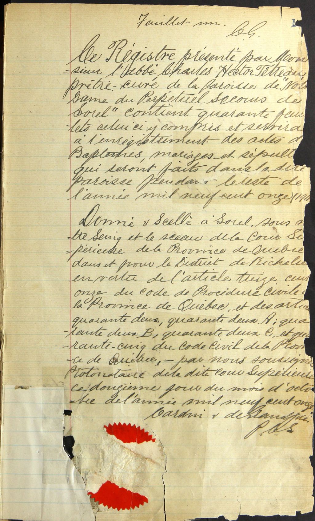 Notre-Dame-du-Perpétuel-Secours, 1911-1921, Archives nationales à Montréal, Fonds Cour supérieure. District judiciaire de Richelieu. État civil, (06M,CE603,S27).