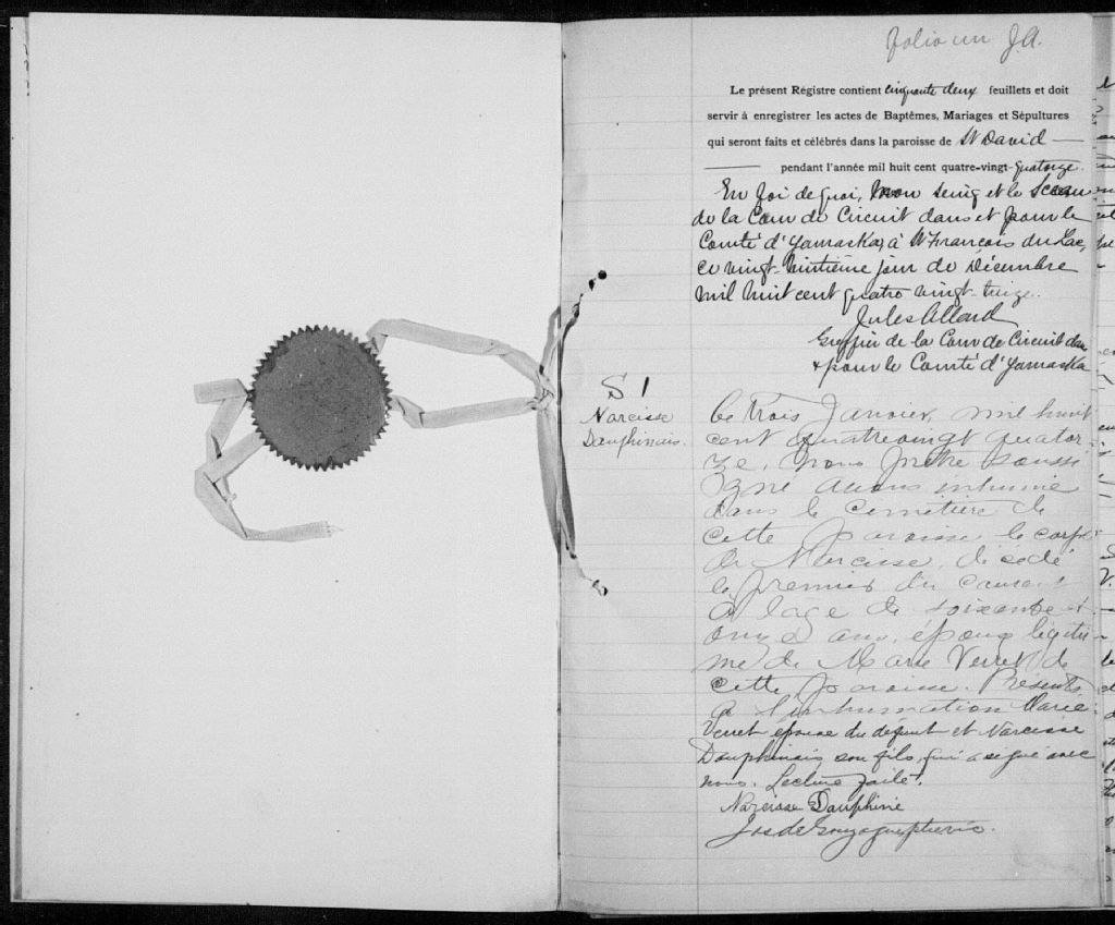Saint-David, 1835-1921, Archives nationales à Montréal, Fonds Cour supérieure. District judiciaire de Richelieu. État civil, (06M,CE603,S3).