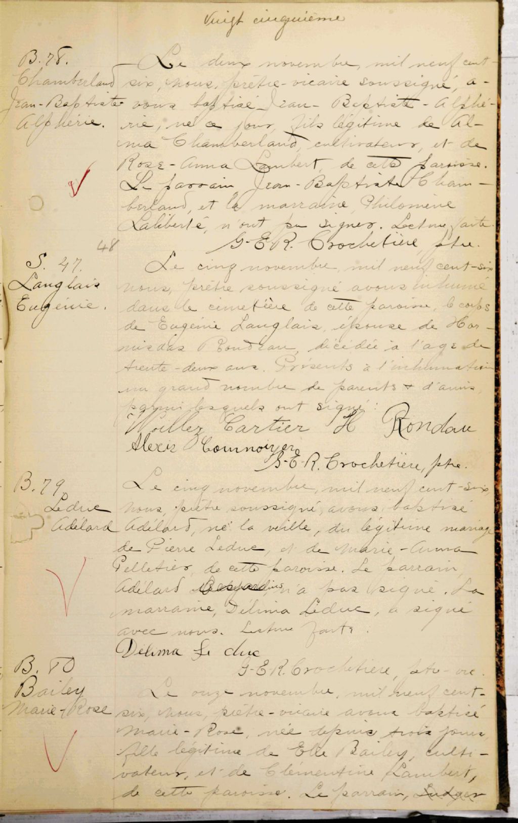 Saint-David, 1835-1921, Archives nationales à Montréal, Fonds Cour supérieure. District judiciaire de Richelieu. État civil, (06M,CE603,S3).