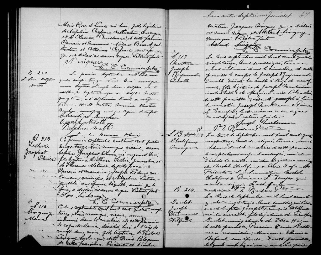 Saint-Pierre-de-Sorel, 1679-1921, Archives nationales à Montréal, Fonds Cour supérieure. District judiciaire de Richelieu. État civil, (06M,CE603,S7).