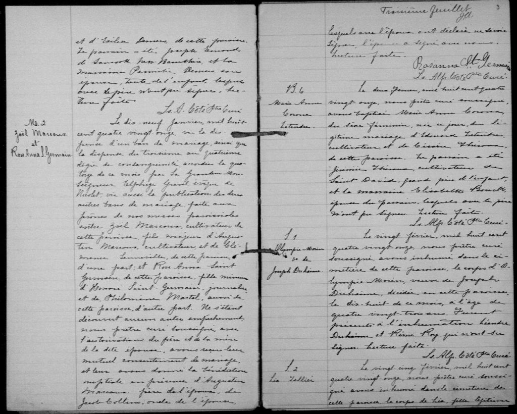 Saint-Pie-de-Guire, 1874-1921, Archives nationales à Montréal, Fonds Cour supérieure. District judiciaire de Richelieu. État civil, (06M,CE603,S8).