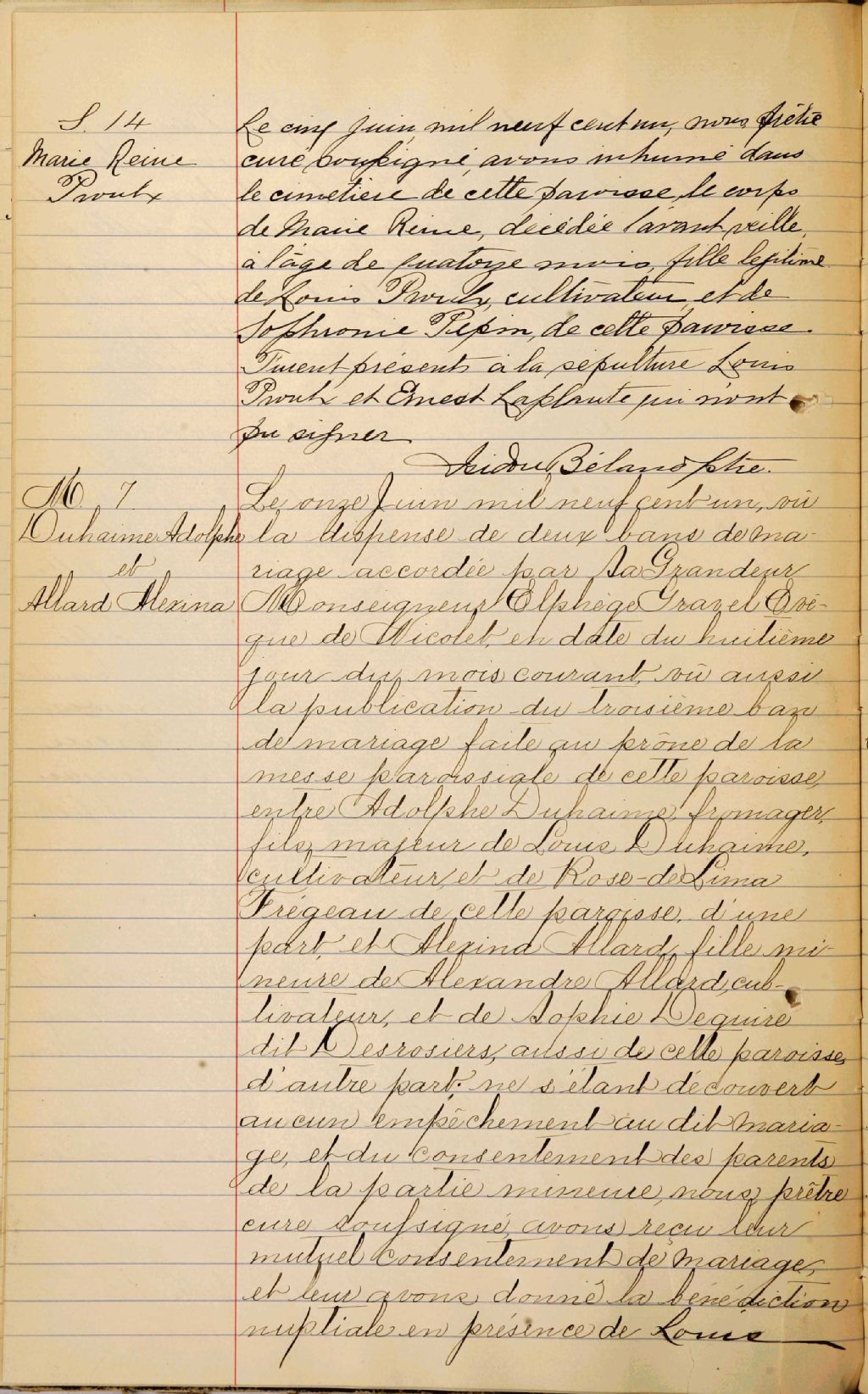 Saint-Pie-de-Guire, 1874-1921, Archives nationales à Montréal, Fonds Cour supérieure. District judiciaire de Richelieu. État civil, (06M,CE603,S8).