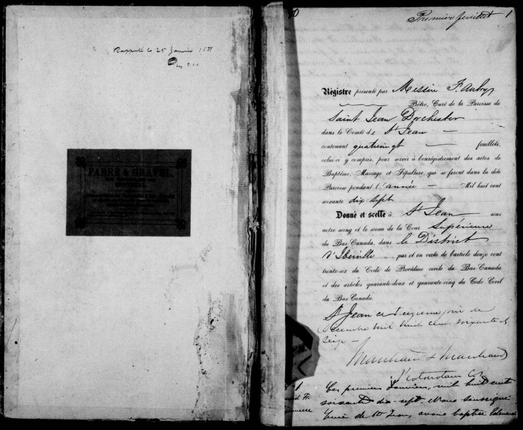 Saint-Jean-l'Évangéliste-de-Dorchester, 1829-1921, Archives nationales à Montréal, Fonds Cour supérieure. District judiciaire d'Iberville. État civil, (06M,CE604,S10).
