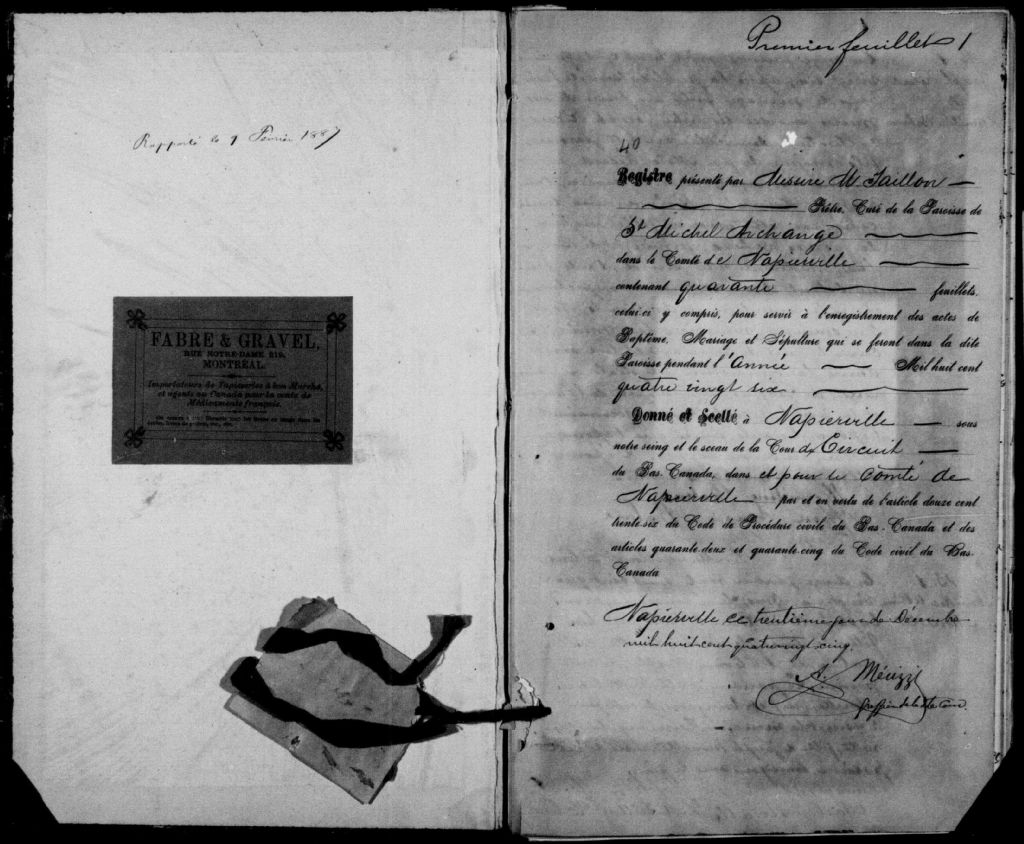 Saint-Michel-Archange, 1854-1921, Archives nationales à Montréal, Fonds Cour supérieure. District judiciaire d'Iberville. État civil, (06M,CE604,S12).