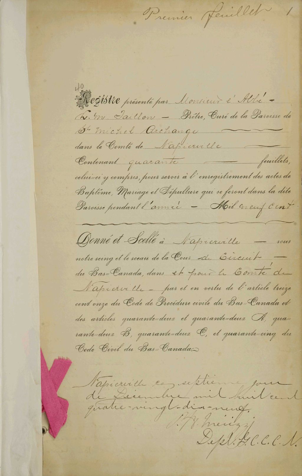 Saint-Michel-Archange, 1854-1921, Archives nationales à Montréal, Fonds Cour supérieure. District judiciaire d'Iberville. État civil, (06M,CE604,S12).
