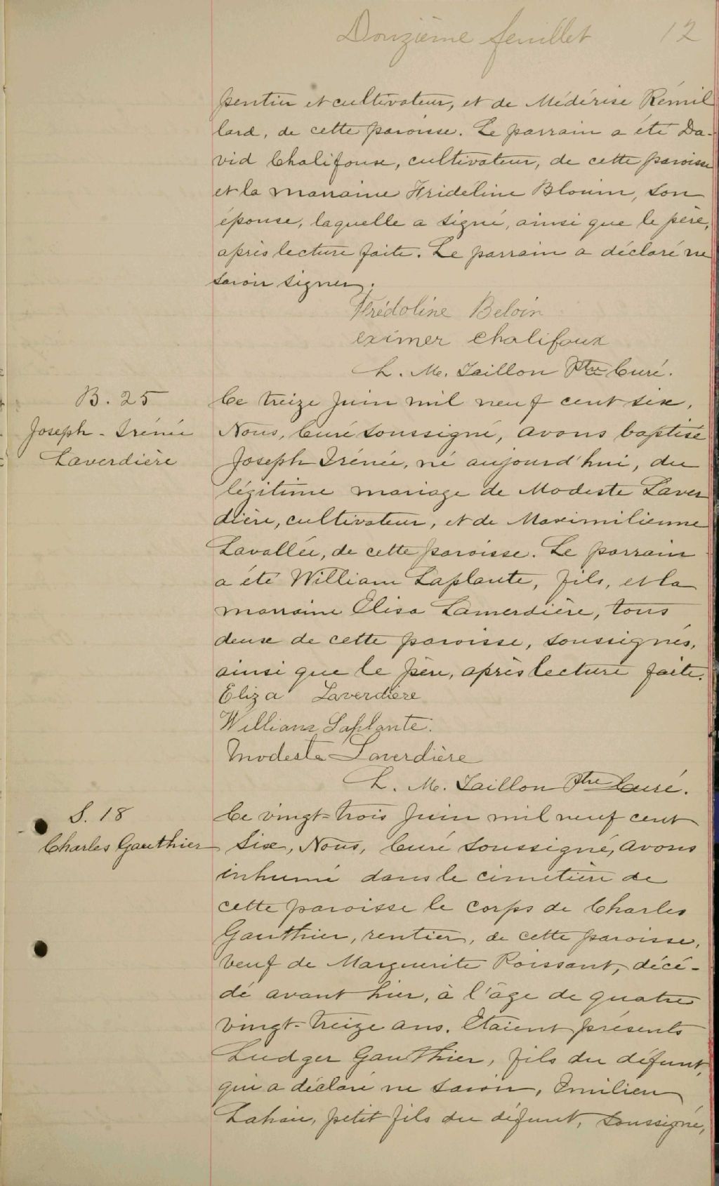 Saint-Michel-Archange, 1854-1921, Archives nationales à Montréal, Fonds Cour supérieure. District judiciaire d'Iberville. État civil, (06M,CE604,S12).