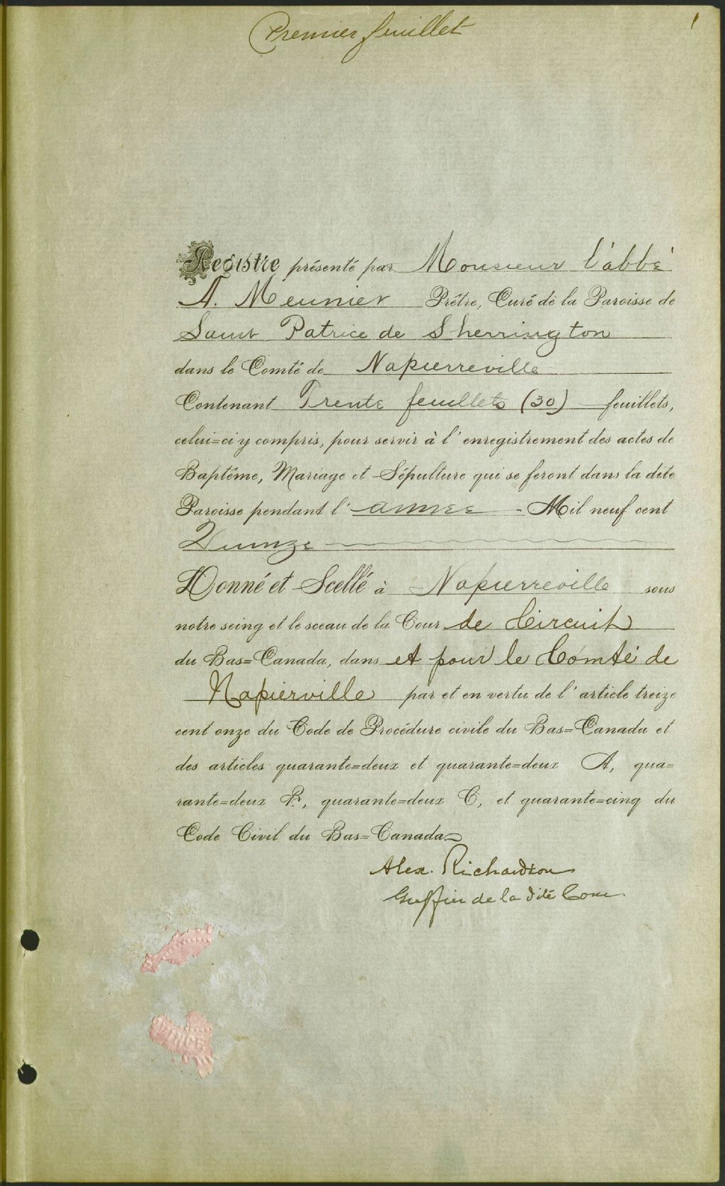 Saint-Patrice-de-Sherrington, 1876-1921, Archives nationales à Montréal, Fonds Cour supérieure. District judiciaire d'Iberville. État civil, (06M,CE604,S13).