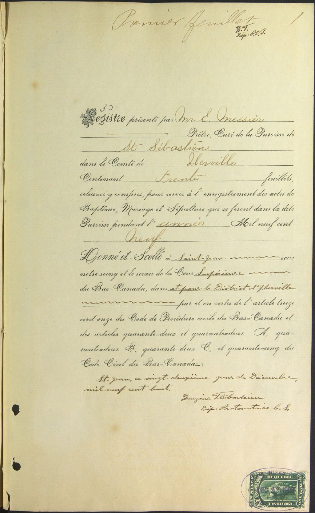 Saint-Sébastien, 1864-1921, Archives nationales à Montréal, Fonds Cour supérieure. District judiciaire d'Iberville. État civil, (06M,CE604,S15).