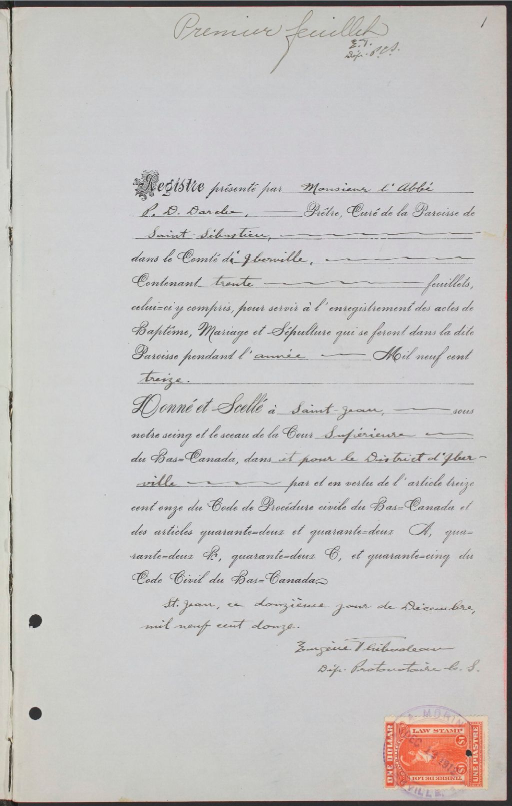 Saint-Sébastien, 1864-1921, Archives nationales à Montréal, Fonds Cour supérieure. District judiciaire d'Iberville. État civil, (06M,CE604,S15).