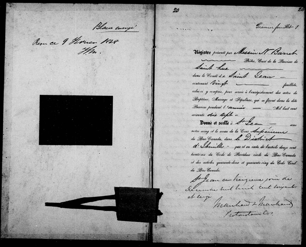Saint-Luc, 1801-1921, Archives nationales à Montréal, Fonds Cour supérieure. District judiciaire d'Iberville. État civil, (06M,CE604,S2).