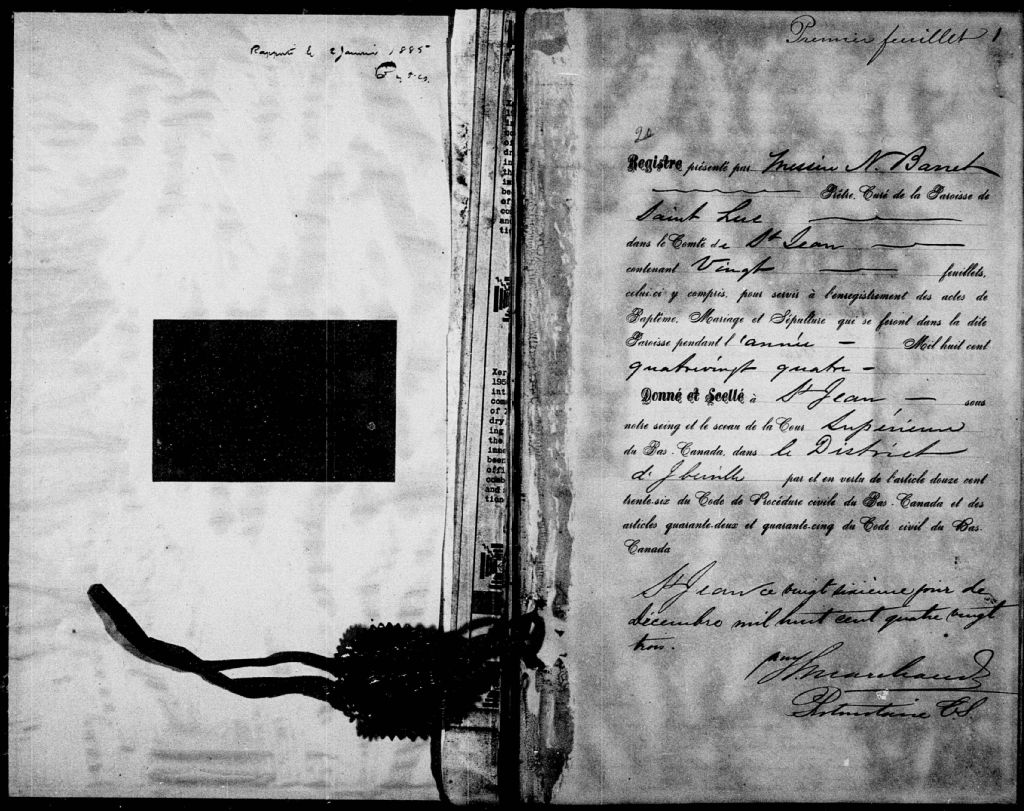 Saint-Luc, 1801-1921, Archives nationales à Montréal, Fonds Cour supérieure. District judiciaire d'Iberville. État civil, (06M,CE604,S2).