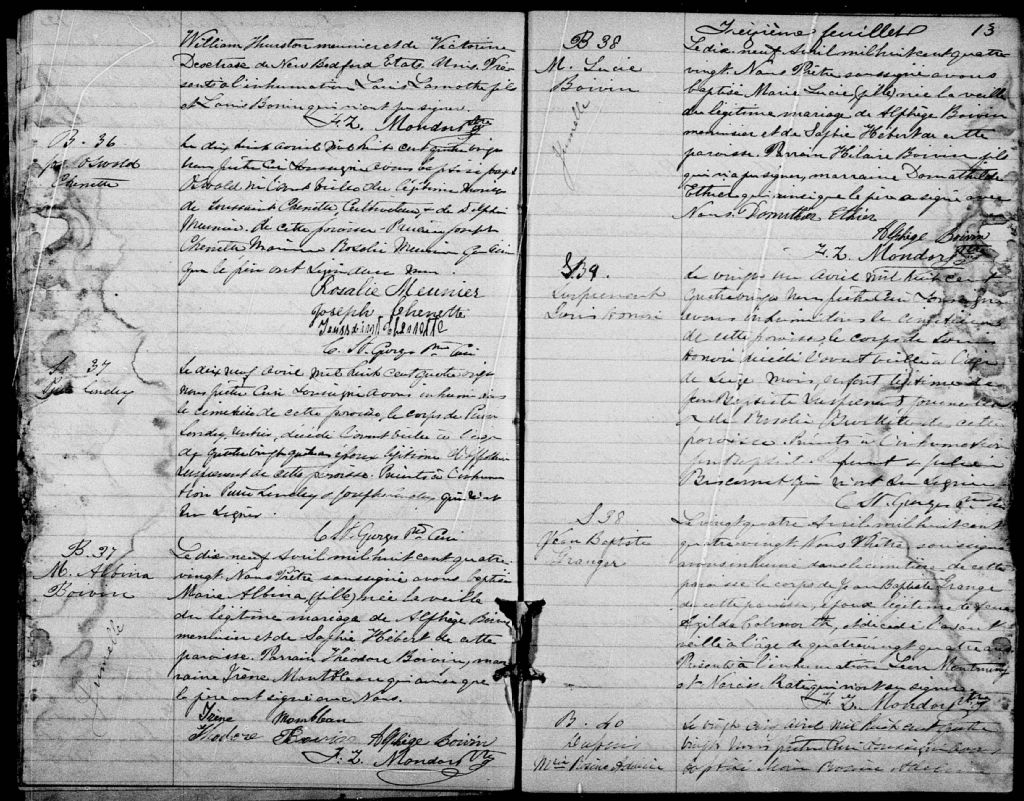 Saint-Athanase-d'Iberville, 1831-1921, Archives nationales à Montréal, Fonds Cour supérieure. District judiciaire d'Iberville. État civil, (06M,CE604,S3).