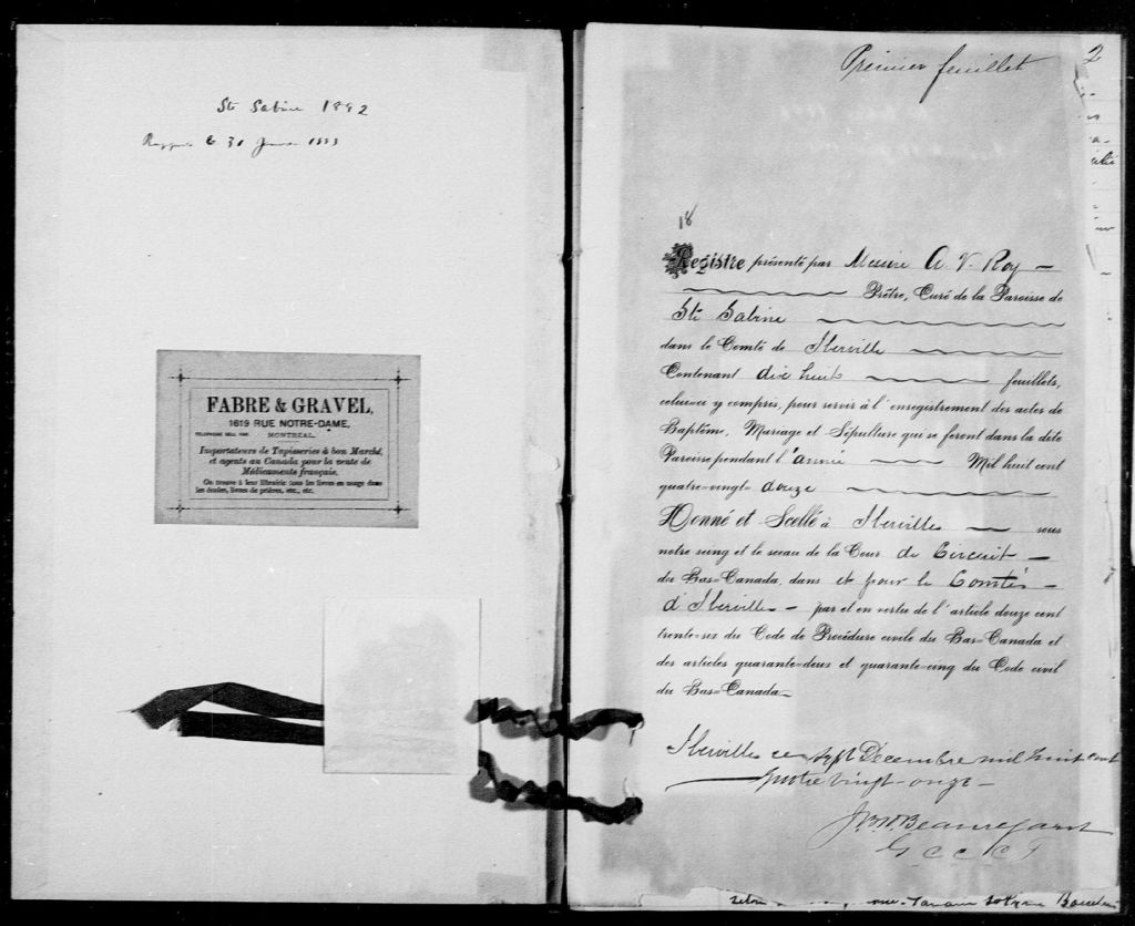 Sainte-Sabine, 1888-1921, Archives nationales à Montréal, Fonds Cour supérieure. District judiciaire d'Iberville. État civil, (06M,CE604,S37).