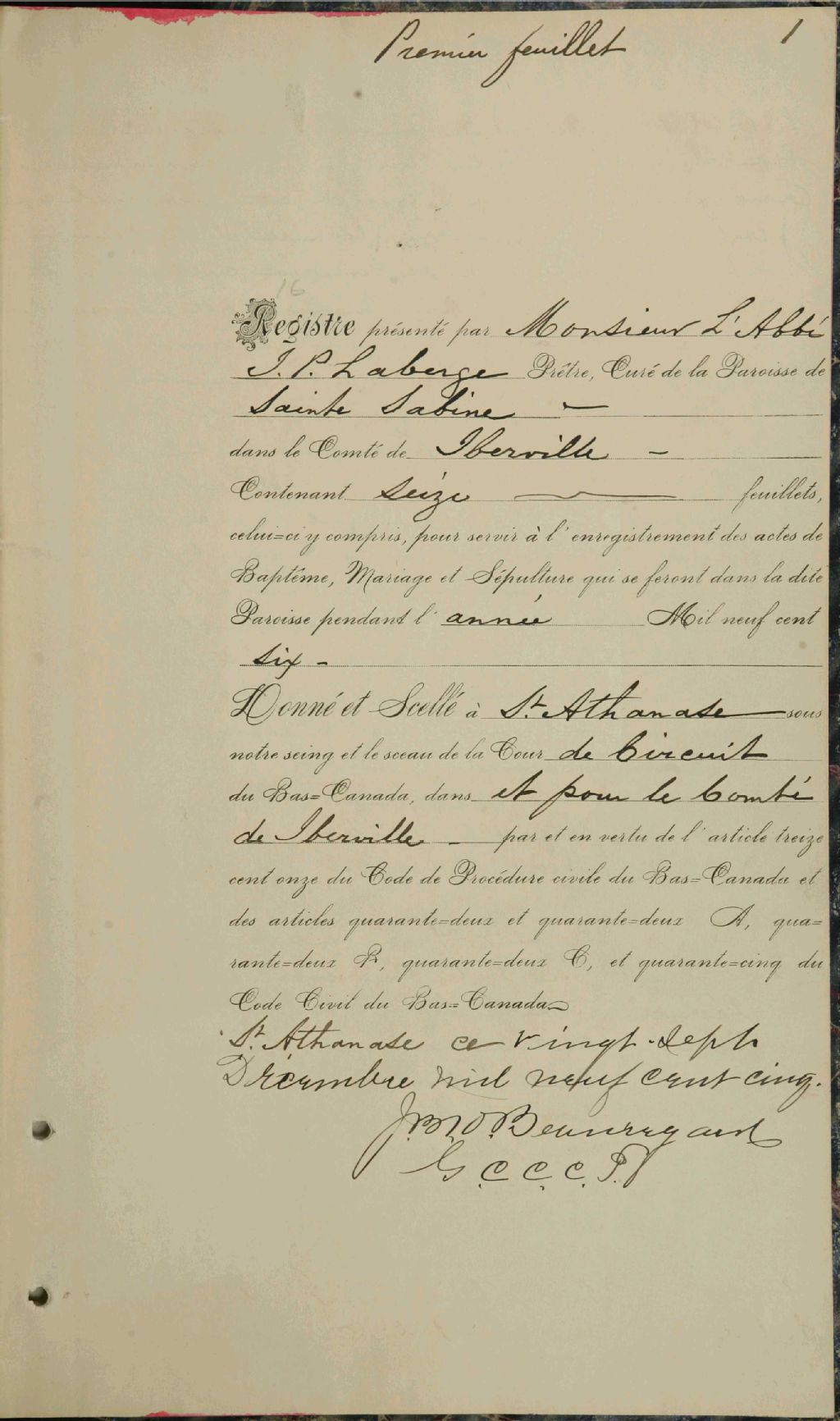 Sainte-Sabine, 1888-1921, Archives nationales à Montréal, Fonds Cour supérieure. District judiciaire d'Iberville. État civil, (06M,CE604,S37).