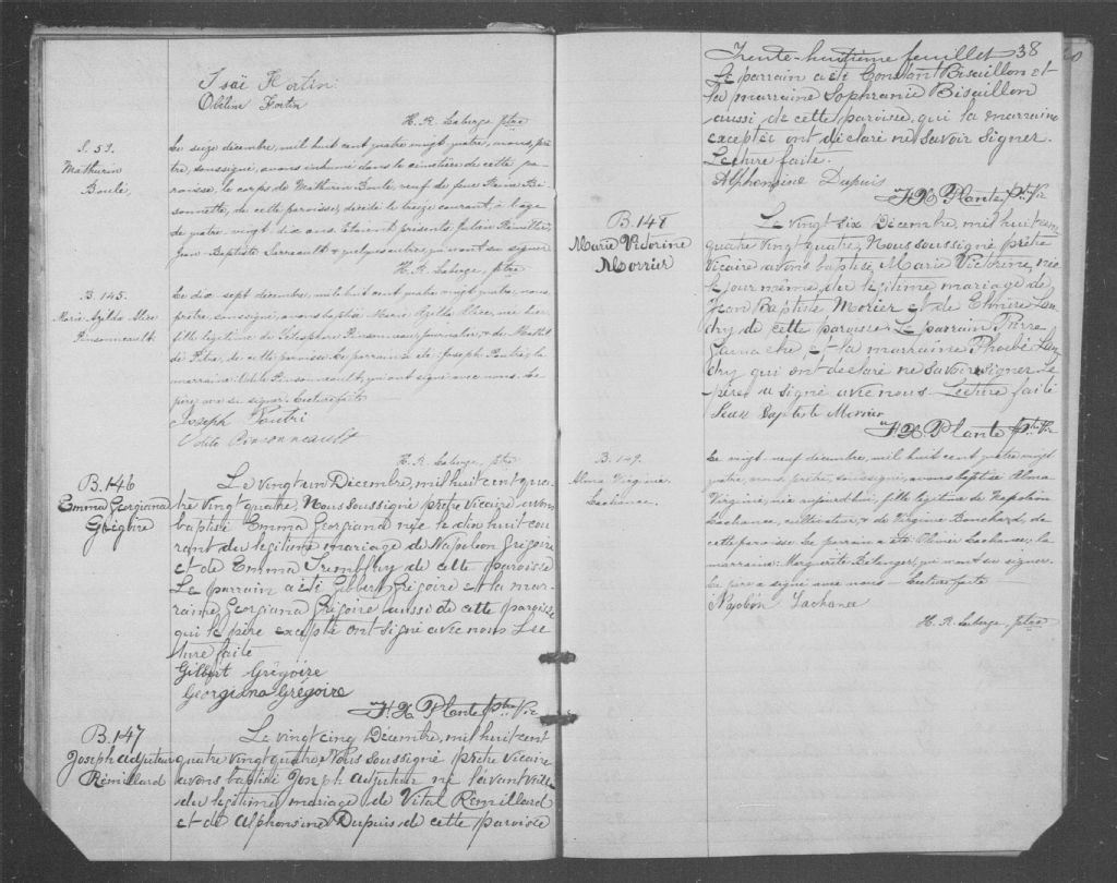Saint-Cyprien-de-Léry, 1823-1921, Archives nationales à Montréal, Fonds Cour supérieure. District judiciaire d'Iberville. État civil, (06M,CE604,S6).