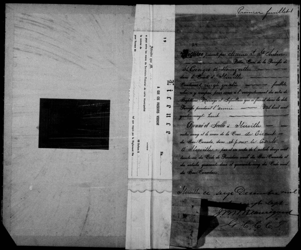 Saint-Georges-de-Henryville, 1833-1921, Archives nationales à Montréal, Fonds Cour supérieure. District judiciaire d'Iberville. État civil, (06M,CE604,S7).