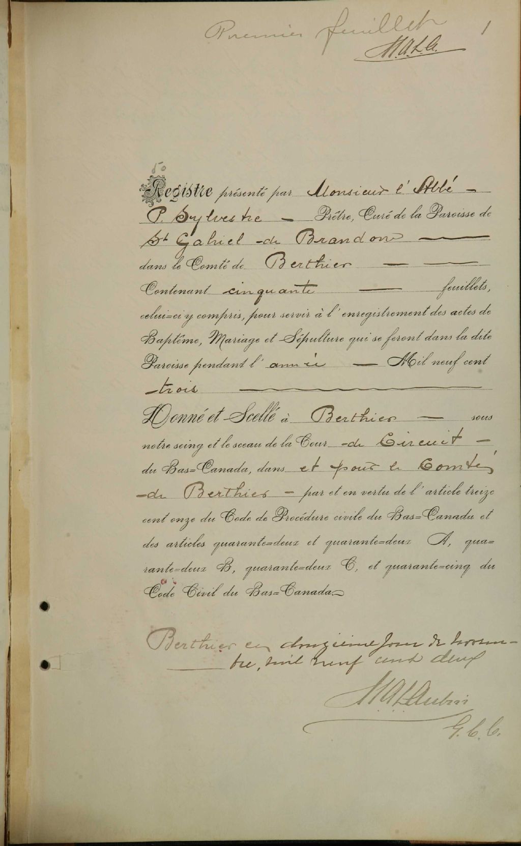 Saint-Gabriel-de-Brandon, 1839-1921, Archives nationales à Montréal, Fonds Cour supérieure. District judiciaire de Joliette. État civil, (06M,CE605,S23).