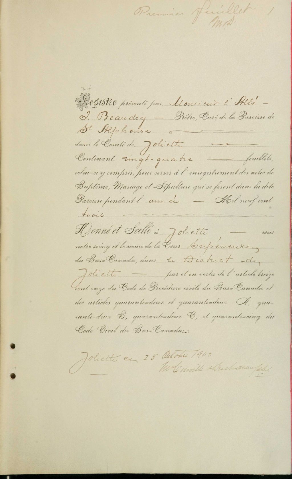 Saint-Alphonse-Rodriguez, 1844-1921, Archives nationales à Montréal, Fonds Cour supérieure. District judiciaire de Joliette. État civil, (06M,CE605,S28).